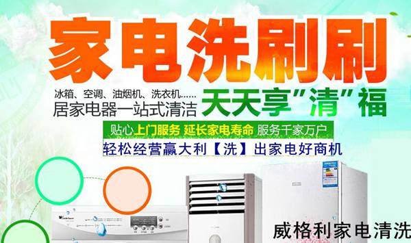 如果你想創(chuàng)業(yè),又找不到投資方向,請聯(lián)系我們。如果你在做家電制冷維修,那么家電清洗無疑使你多了一項增值項目。如果你做著家政保潔,那么在不增加人力的情況下加一項清洗項目,多一份收益,何樂而不為呢。如果你是在銷售家用電器,還要為售后服務(wù)不完善發(fā)愁嗎,家電清洗服務(wù)是不錯的選擇。