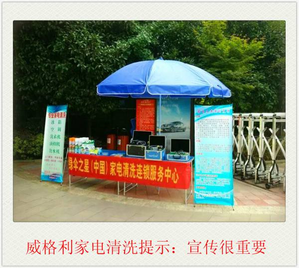 洗多多家電清洗加盟中心非常注重宣傳,即日起加盟的客戶,均可獲贈(zèng)一*3米*3米的大號(hào)戶外宣傳帳篷。