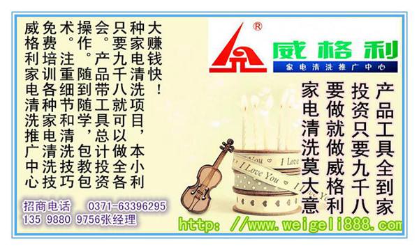 如果你想創(chuàng)業(yè),又找不到投資方向,請聯(lián)系我們。如果你在做家電制冷維修,那么家電清洗無疑使你多了一項增值項目。如果你做著家政保潔,那么在不增加人力的情況下加一項清洗項目,多一份收益,何樂而不為呢。如果你是在銷售家用電器,還要為售后服務(wù)不完善發(fā)愁嗎,家電清洗服務(wù)是不錯的選擇。