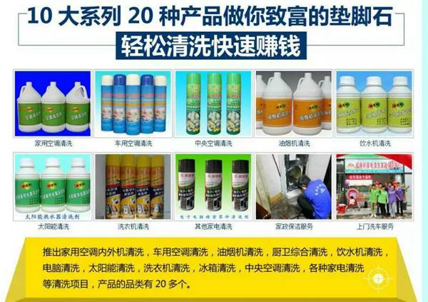 洗多多家電清洗招商加盟中心推出的有家用空調(diào)內(nèi)外機(jī)清洗,車用空調(diào)清洗,油煙機(jī)清洗,飲水機(jī)清洗,電腦清洗,太陽(yáng)能清洗,洗衣機(jī)清洗,冰箱清洗,中央空調(diào)清洗,各種家電清洗等清洗項(xiàng)目20多個(gè)。這些品類都是投資少,賺錢快,低風(fēng)險(xiǎn)高收益的特別適合創(chuàng)業(yè)的好項(xiàng)目。、家電清洗加盟廠家,家電清洗設(shè)備生產(chǎn)廠家,家電清洗劑,家電清洗設(shè)備