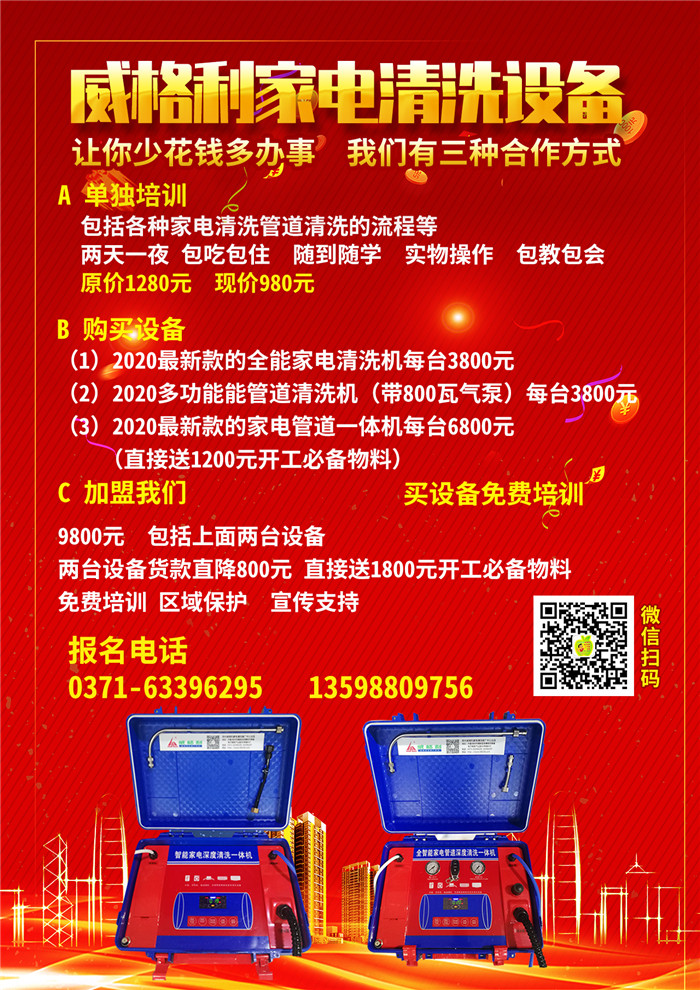 如果做代理,根據(jù)代理區(qū)域的大小不同,有相應*批提貨量的要求,*小的縣區(qū)**為產(chǎn)品加工具只需要9800元,就可以做*部家電清洗區(qū)域*代理。
