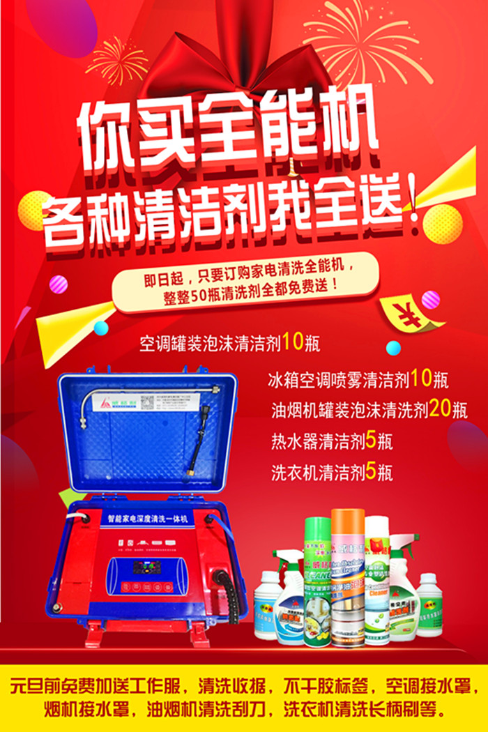 即日起,凡訂購(gòu)家電清洗*能機(jī)+管道清洗*能機(jī)的客戶