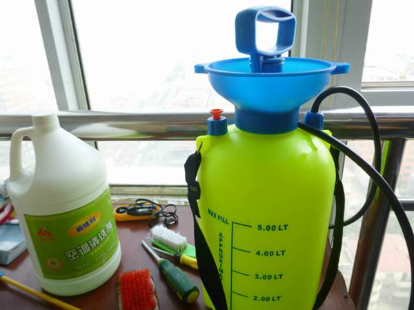 我們知道,空調(diào)室外機(jī)一般安裝位置距窗外不遠(yuǎn),在清洗的時(shí)候需要用一個(gè)類似打農(nóng)藥用的噴霧器,里面裝上清洗劑,然后手動(dòng)加壓,直接噴撒即可。一般的噴霧器加上噴霧桿,長(zhǎng)度都在2米以上,因此人站在室內(nèi)就可以直接進(jìn)行室外機(jī)清洗.這和高度沒(méi)有關(guān)系,操作人員根本無(wú)須高空作業(yè).清洗起來(lái)也很容易。我們配送的清洗工具里面有專業(yè)針對(duì)外機(jī)清洗的。