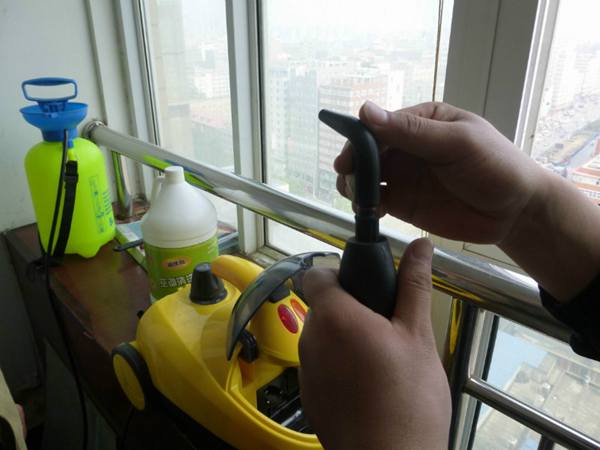 圖4,把1500瓦的一次加水量1500ml的大蒸汽清洗機(jī)加水燒開(kāi),槍頭處加上一個(gè)可以轉(zhuǎn)向的小噴頭,就可以噴灑到空調(diào)看不到的那個(gè)側(cè)面和背面。(大蒸汽清洗機(jī)的各種小配件都是前面的那個(gè)蓋子下面)。